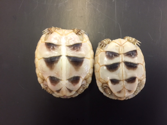 ♂は和名のオオフチゾリリクガメの通り後半の縁甲板と臀甲板が伸びてかっこいいです。